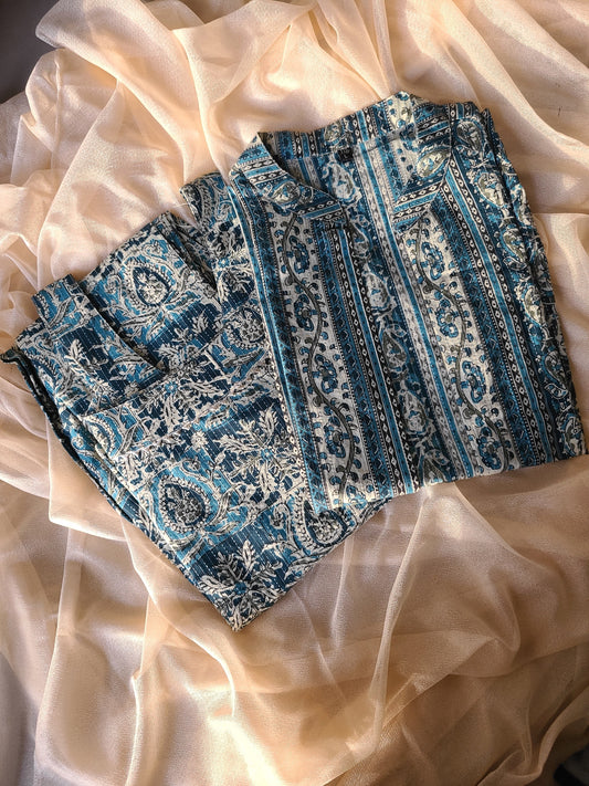Sleevless indigo long cotton dress with printed indigo Shrug