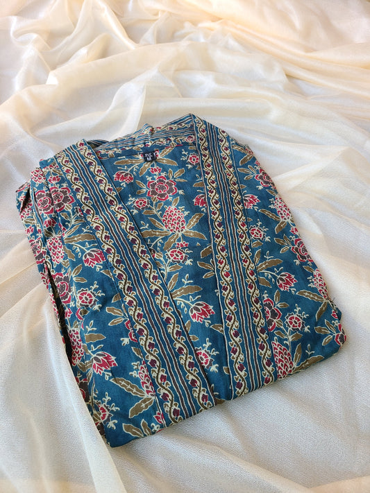 Blue Khadi Style Kurta and Pant Set