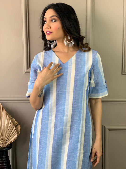 Solid Blue Pintuck Cotton Kurta and Pant set