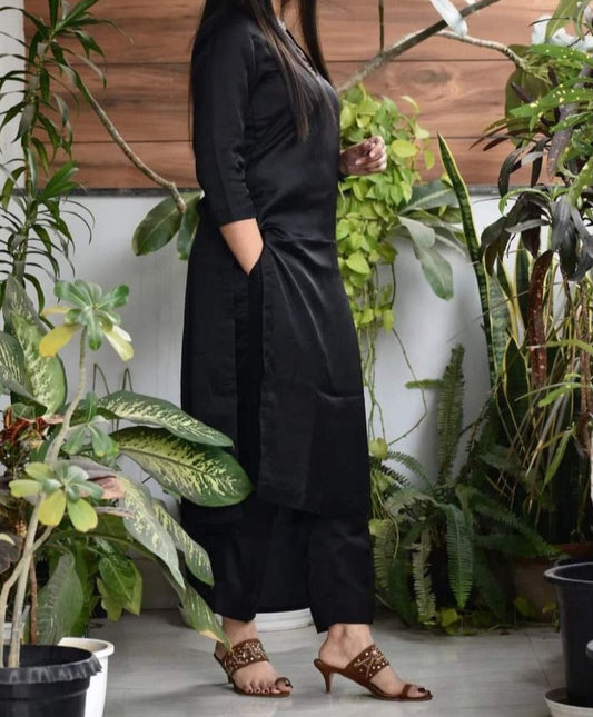 Solid Black Rayon Kurta and Pant set