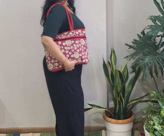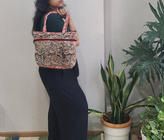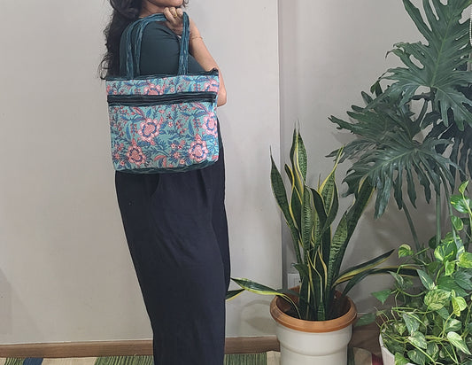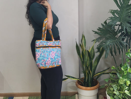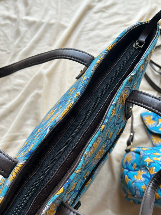 Tote bag with pouch -Block Printed & Leather-Free