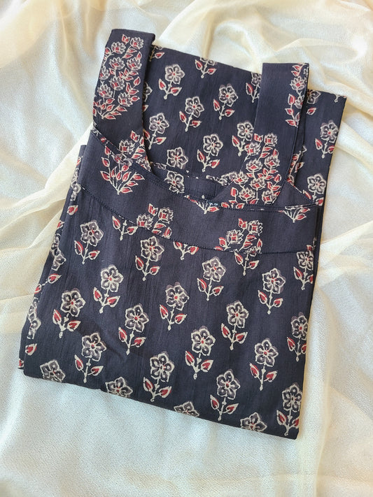 Blue floral Sleevless Designer Long cotton, block printed Shrug